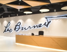 Сингапурская студия дизайна интерьера SCA Design завершила проект оформления современного офиса Лео Бернетт в Сингапуре. Проект Лео Бернетт включает в себя пространства с геометрическими мотивами и художественными инсталляциями, где встречается старое и новое, Восток и Запад. При входе в лобби посетителей встречает разительный потолок с необычным освещением, перекликающийся с малазийским рисунком пола. Лобби переходит в приемную, где геометрическая характеристика черного-белого потолка, красочные стены и пол, а также текстура дерева создают атмосферу теплоты в пространстве. Ему вторит и ярко освещенная регистрационная стойка.
